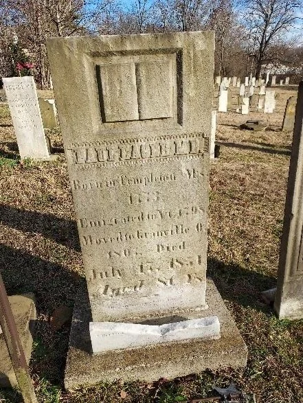 Dr. Eager’s beautiful marble headstone was broken off near its base in 2019, and was repaired with the jagged bottom fragment preserved (see photo), because it shows the initial and surname of the stonecarver: “J. Woodard.” This artisan was likely Granville stonecarver Joseph Woodard, Jr. The marble headstone of Dr. Eager’s wife Elizabeth is immediately to the left (north) of Paul’s, and the three headstones just north of Elizabeth’s mark the graves of four of the Eagers’ children who died at the ages of 6 weeks (twins), 16 years, and 12 years.