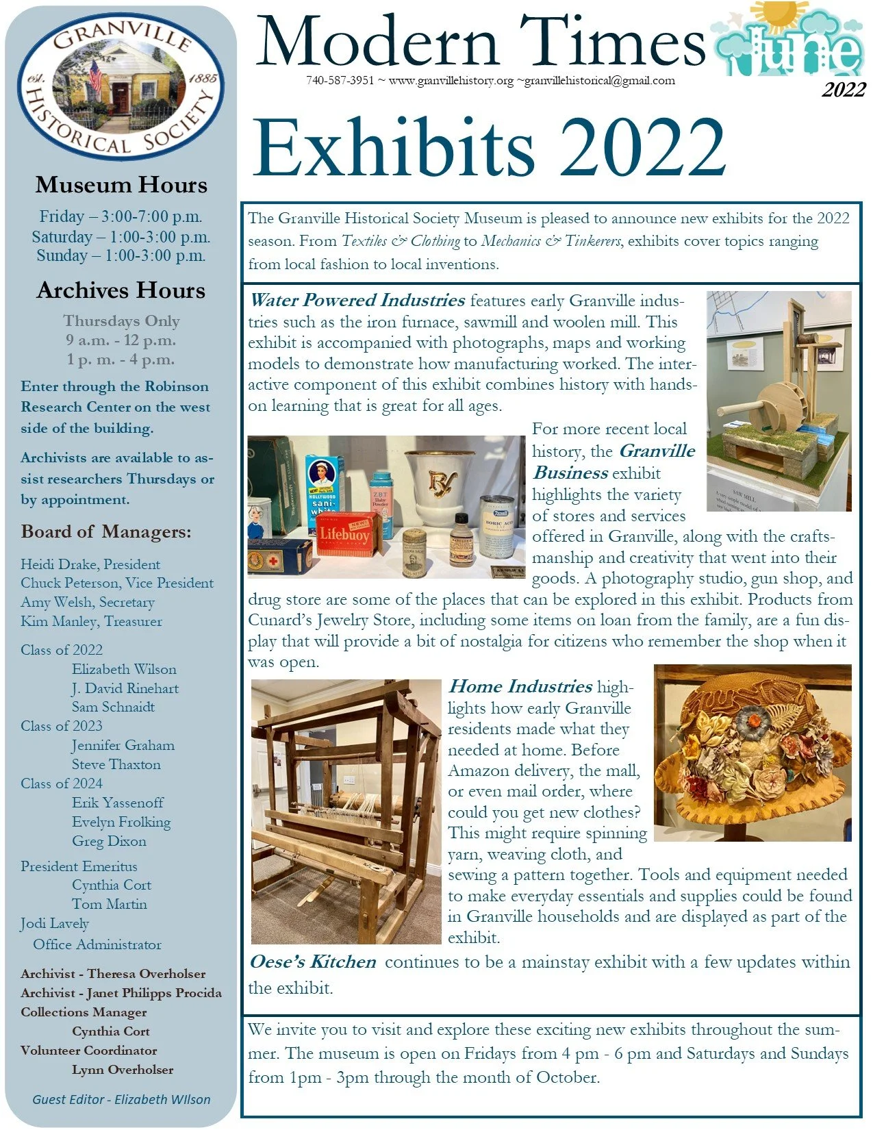 The latest issue of our monthly newsletter, Modern Times, is now available. This month we tell you about the exciting new exhibits we have for you at the GHS museum. (For hours and location of the museum, click here.)
